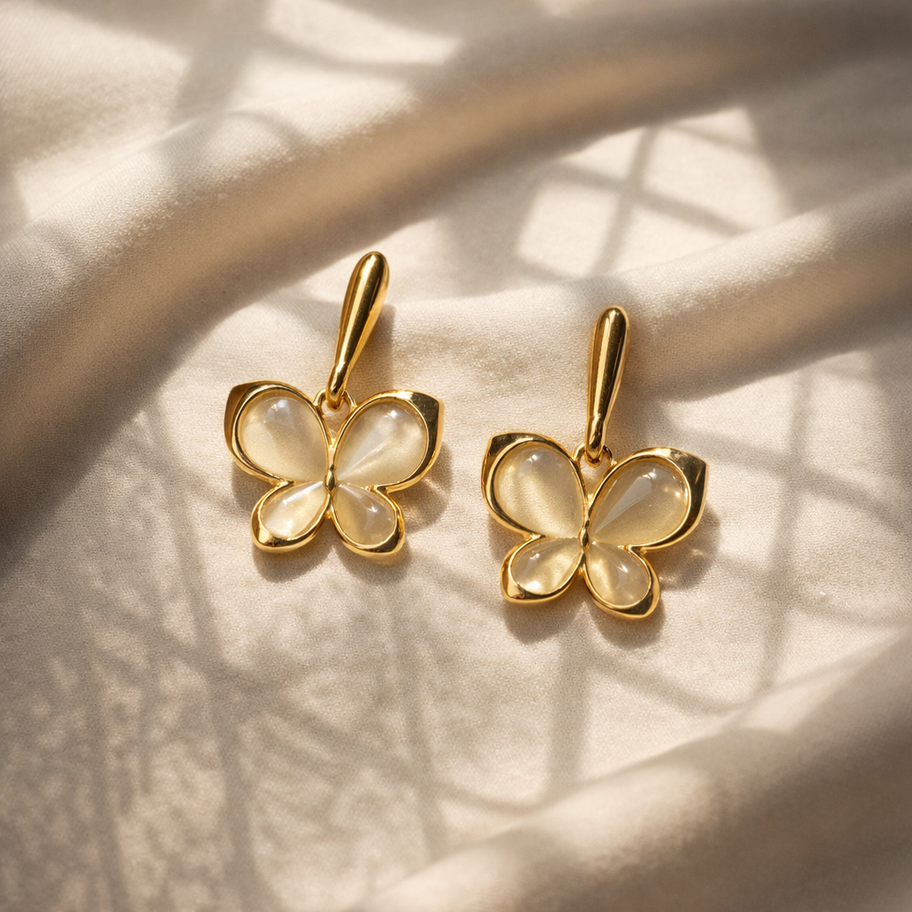 Featuring butterfly-inspired detailing in a gold tone, these earrings feel light, feminine, and refined.