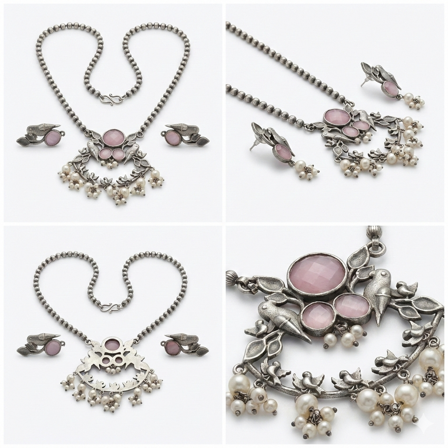 The Multicolor Parrot Pearl Celebration Necklace Set by Pure Parrot is a celebration of vibrant Indian artistry.