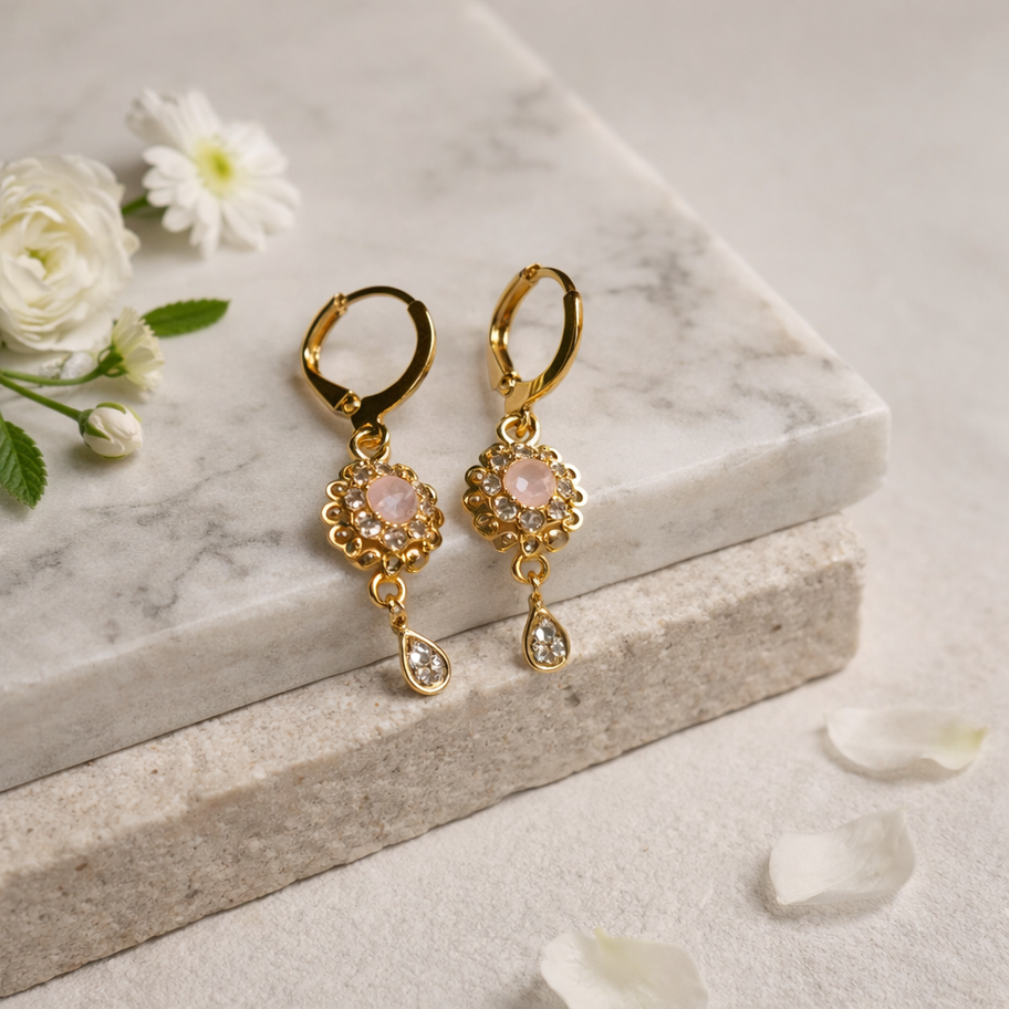 The Peach Vala Glow Earrings by Pure Parrot blend soft pastel tones with diamond-style accents for a refined festive look.